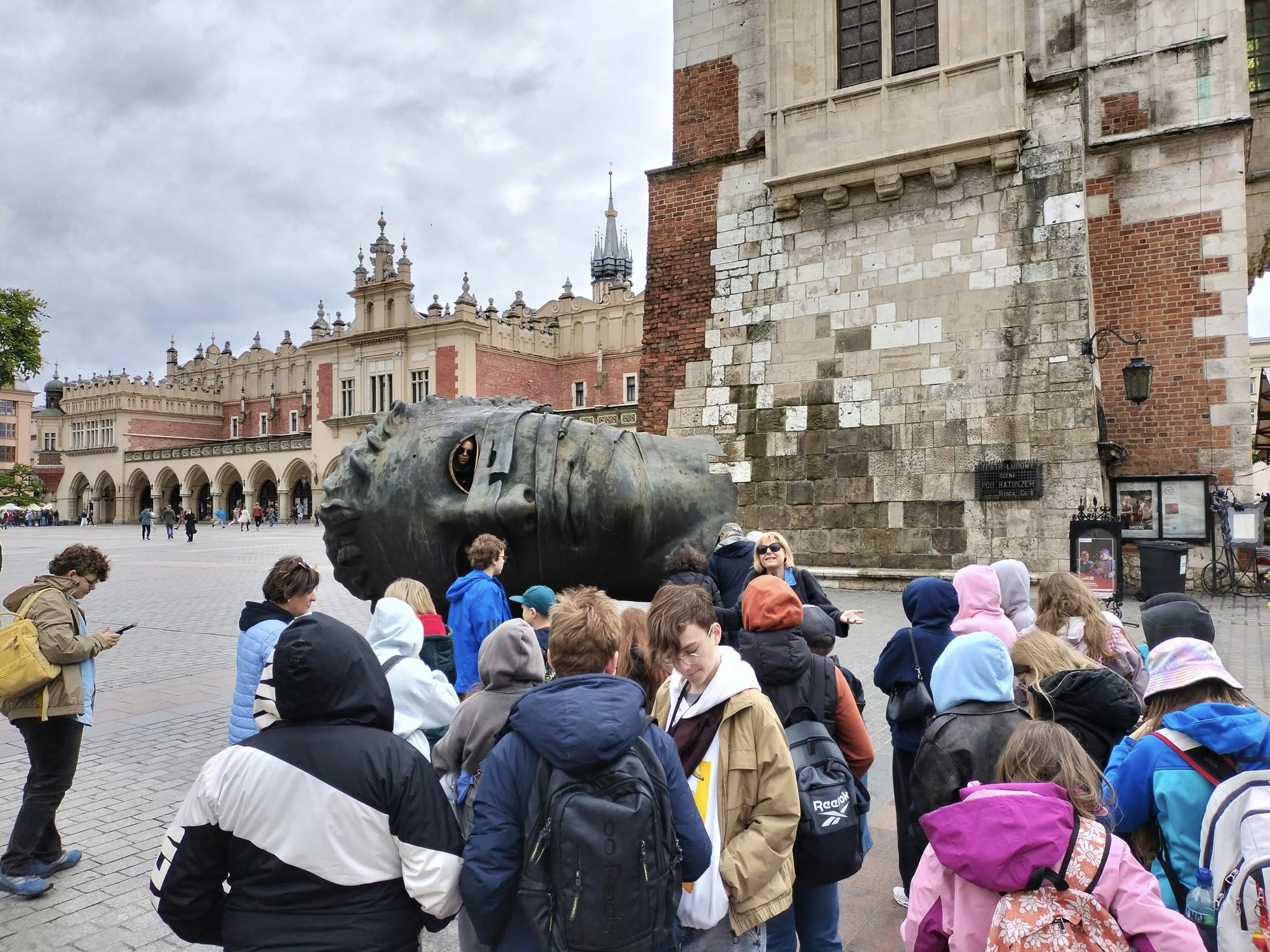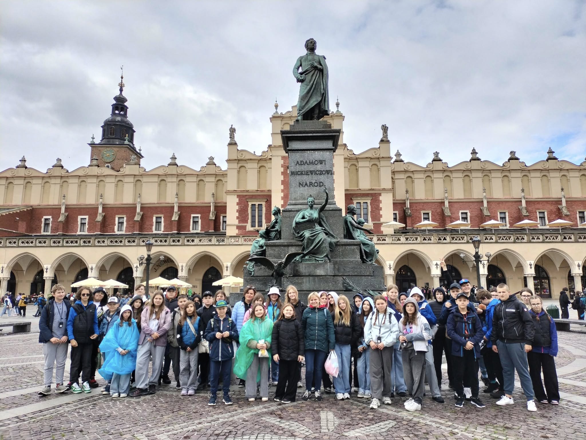 Następnie uczestnicy wycieczki udali się do Krakowa. Tam czekał ich dzień pełen zwiedzania – uczniowie odwiedzili Stare Miasto, przeszli słynnym Traktem Królewskim, podziwiali architekturę Rynku Głównego, poznając losy polskich królów i ważne wydarzenia historyczne. Choć było dużo chodzenia, uczniowie z entuzjazmem chłonęli wiedzę, mając okazję namacalnie zetknąć się z historią. Wieczorem odpoczywali w zabytkowej, klimatycznej kamienicy w centrum Krakowa, gdzie mieli zapewniony nocleg.