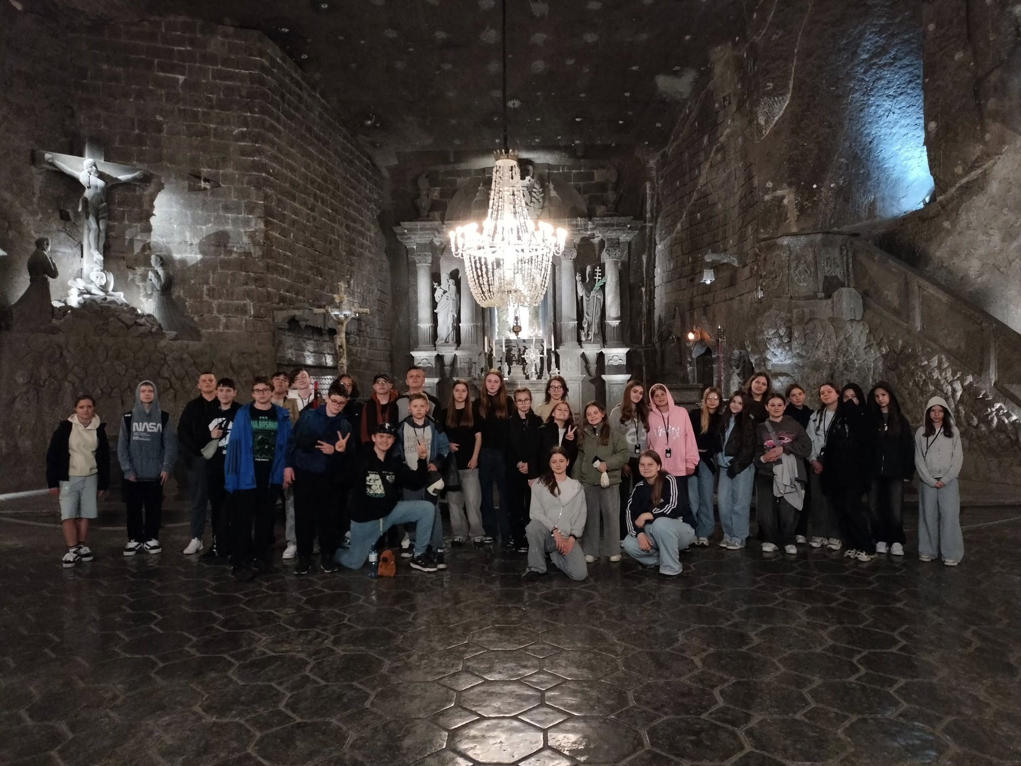 Pierwszym przystankiem na trasie były Kielce, gdzie uczniowie mieli okazję zwiedzić Jaskinie Kadzielnia.