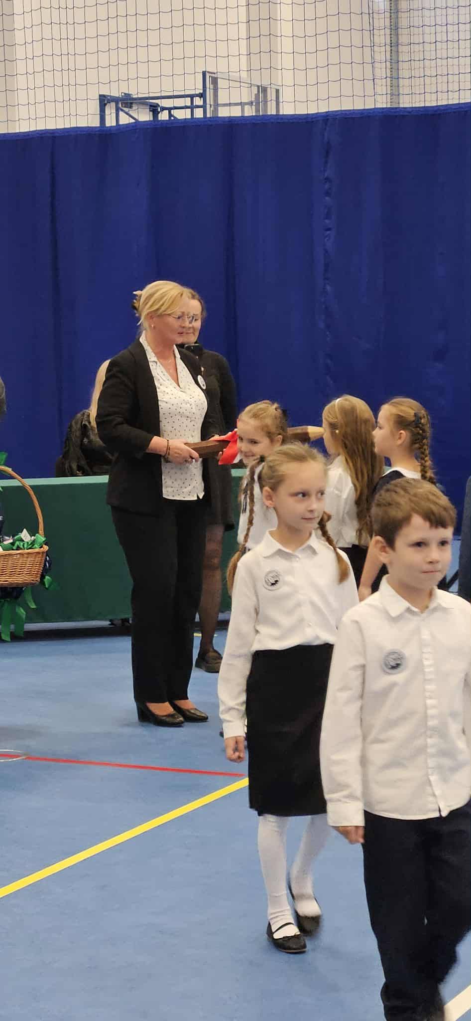 Następnie nadszedł najbardziej doniosły moment – ślubowanie na sztandar szkoły. Od tej chwili nasi najmłodsi stali się pełnoprawnymi uczniami. Z dumą odebrali również swoje pierwsze legitymacje szkolne, symboliczny znak nowego etapu w ich życiu .