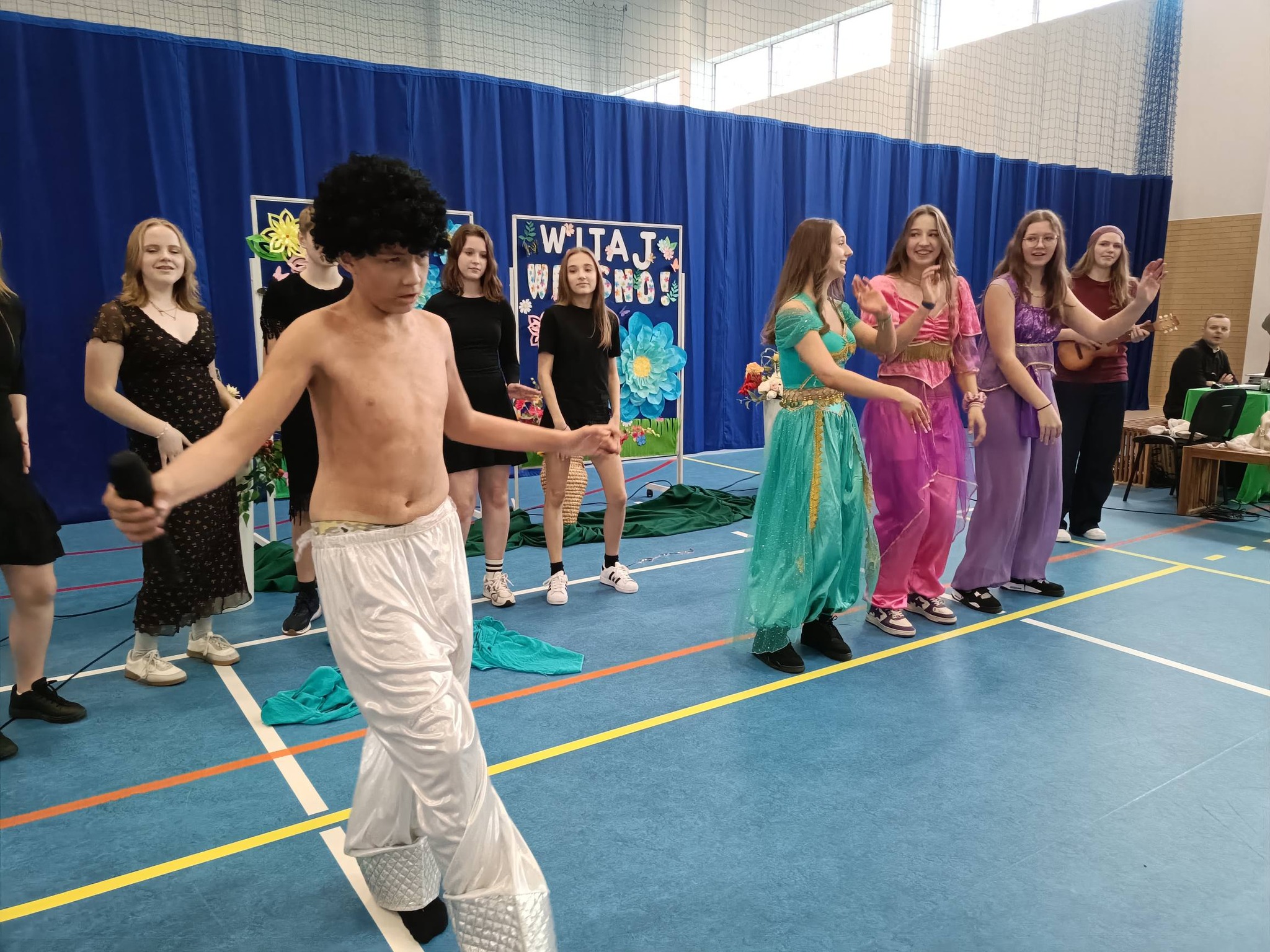 Uczniowie przygotowali różnorodne występy artystyczne, które zachwyciły publiczność pomysłowością i starannością wykonania. Na scenie nie zabrakło tańca, śpiewu, humorystycznych scenek oraz wiosennych akcentów, które wprowadziły wszystkich w pogodny nastrój. Każdy występ był dowodem na ogrom pracy włożonej w przygotowania oraz talent naszych uczniów.