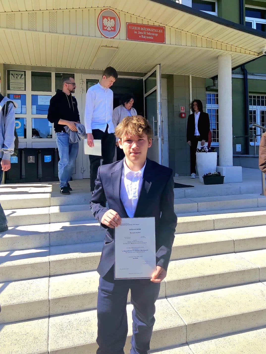 Gratulacje kierujemy również do Kacpra Stankiewicza, ucznia pani Beaty Kopko, który uzyskał tytuł finalisty.